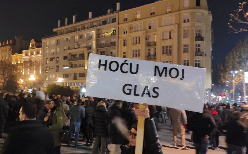 V Beogradu so demonstranti pred poslopjem republiške volilne komisije protestirali proti volilnim mahinacijam vladajoče Srbske napredne stranke. V opozicijski koaliciji Srbija proti nasilju ne priznavajo rezultatov nedeljskih volitev, na katerih je prepričljivo zmagala stranka, ki jo neuradno, a dejansko vodi predsednik države Aleksandar Vučić. Kandidat Srbije proti nasilju za župana Beograda je bil Vladimir Obradović, nekdanji član konservativne Demokratične stranke Srbije. Kakor je na protestnih dejal Obradović, zahtevajo razveljavitev volitev v Beogradu.