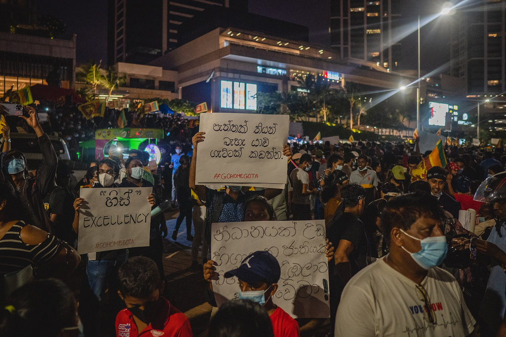 Potem ko je Ranil Vikremesinge postal šrilanški predsednik, je za premierja imenoval Dineša Gunavardeno. Gunavardena je član vladajoče stranke Fronta šrilanškega ljudstva in zaveznik nedavno odstavljene družine Radžapaksa, katere člani so zbežali z otoka. Imenovanje starega mačka vlade Gotabaje Radžapakse na funkcijo je v nasprotju z obljubo novega predsednika, da bo vlado oblikoval tudi s člani iz vrst opozicijskih strank. Protestniki so se potem, ko je parlament izvolil Vikremesingeja za novega predsednika, ponovno zbrali na ulicah in zahtevali razpis predčasnih volitev namesto menjav obrazov znotraj vladajoče stranke. Danes ponoči je vojska vdrla v šotore protestnikov in protestnike odstranila izpred predsedniške palače. Protestniki so sicer pred tem napovedali, da se bodo danes sami umaknili izpred palače. Vojska je uničevala telefone protestnikov, s katerimi je bila posneta racija, ter aretirala več voditeljev protestnikov. Vojska lahko zaradi razglašenega izrednega stanja dlje časa zadržuje protestnike, ne da bi jih česarkoli obtožila.