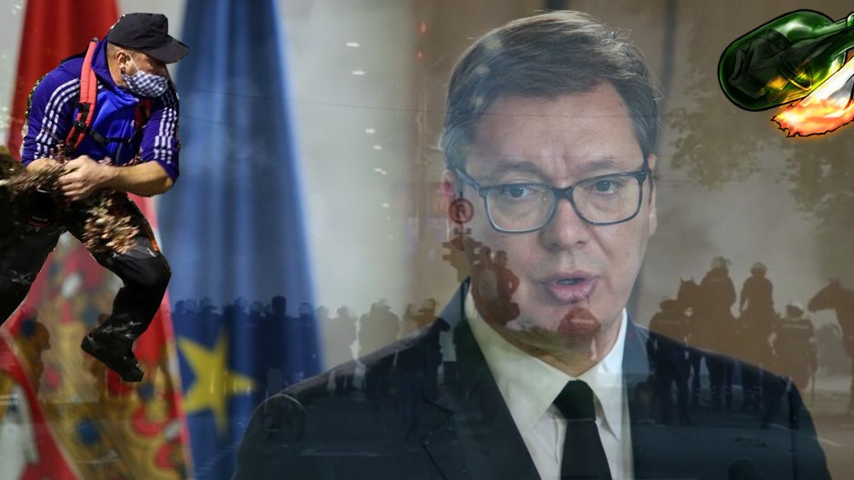 A Vučić meni drugače. Na današnji tiskovni konferenci je za nasilje okrivil raznorazne teoretike zarote.