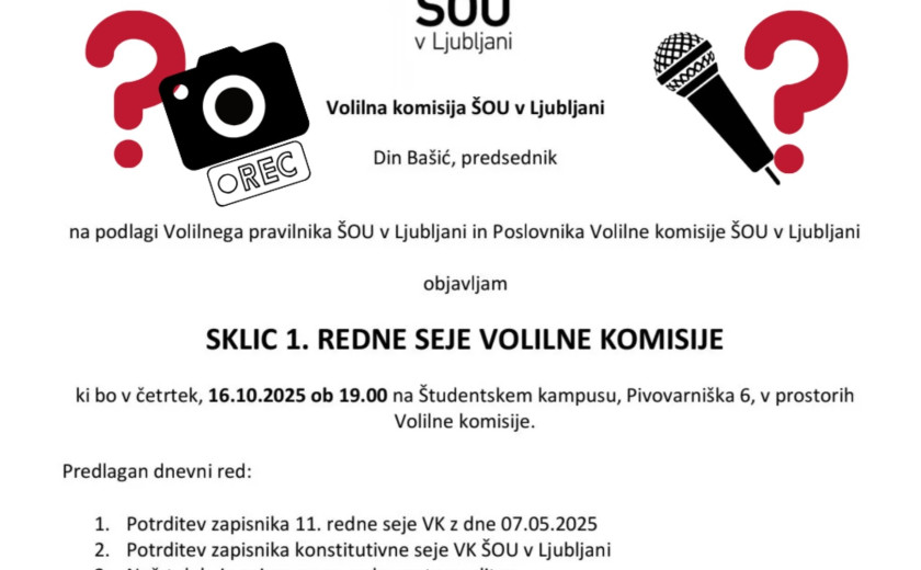 Povzetek 1. redne seje volilne komisije ŠOU v Ljubljani