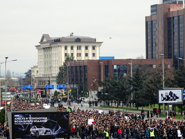 V Makedoniji se je včeraj na največjem študentskem protestu doslej zbralo okoli 12.000 študentov in profesorjev, ki nasprotujejo vladni želji po uvedbi eksternega preverjanja ob koncu študija. Že dober mesec star predlog ministra za izobraževanje Abdulaqima Ademija namreč v želji po povečanju kakovosti študija predvideva, da bi študenti pred diplomo pisali še tako imenovan državni test, ki pa po besedah Študentskega plenuma grobo posega v avtonomijo univerze. Namesto vsebinskih odgovorov na kritike in pojasnil spornega zakona se makedonska vlada raje ukvarja z obtoževanjem opozicije za organizacijo protestov, ki so sočasno potekali v vseh večjih makedonskih mestih.