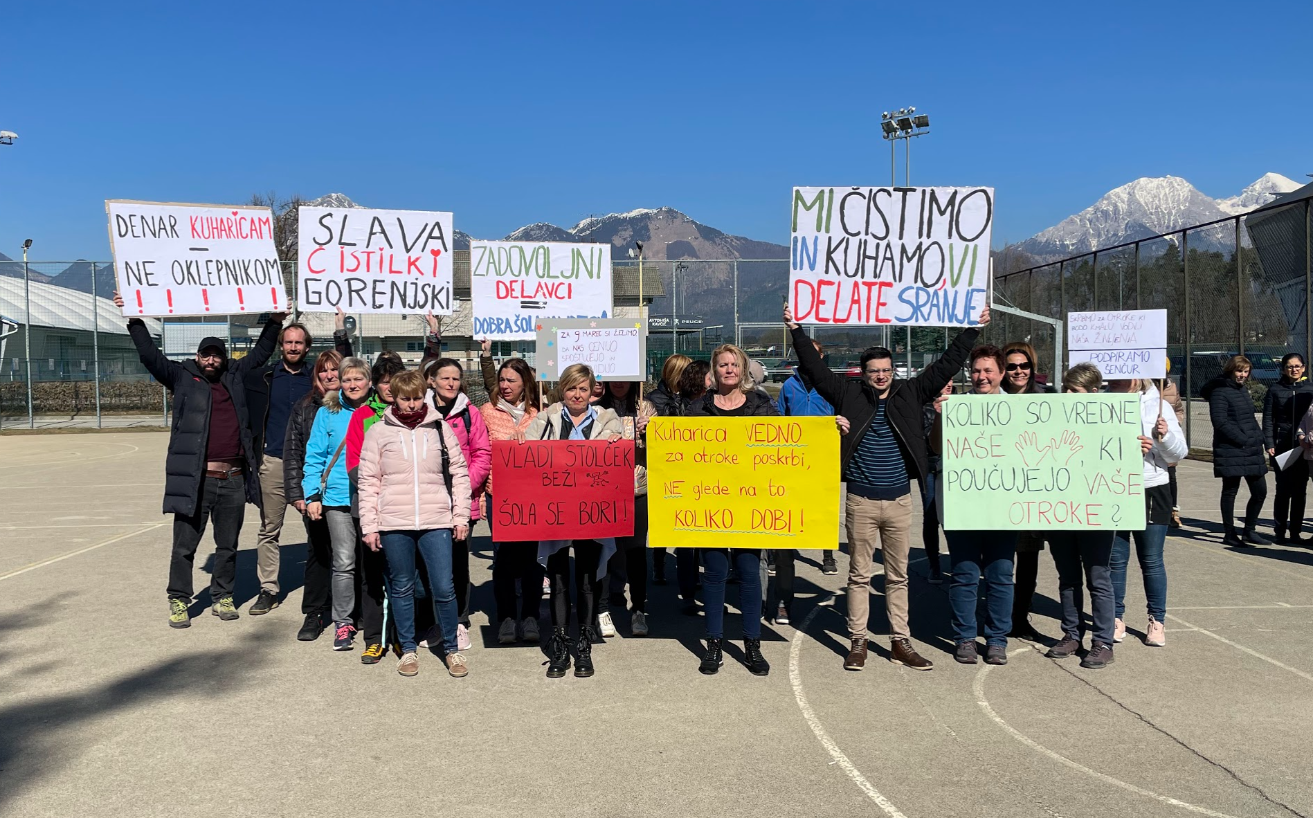 Kaj pa so stavkajoči zahtevali? Na SVIZ-u so s protestnim »obračanjem hrbta podcenjujočemu odnosu vlade« pet do dvanajstih želeli nasloviti pomanjkanje dialoga med socialnimi partnerji, hkrati pa so zahtevali ustrezne koronadodatke in dvige plač zaposlenih v plačnem razredu J. Ta vključuje med drugim kuharice, čistilke in hišnike.