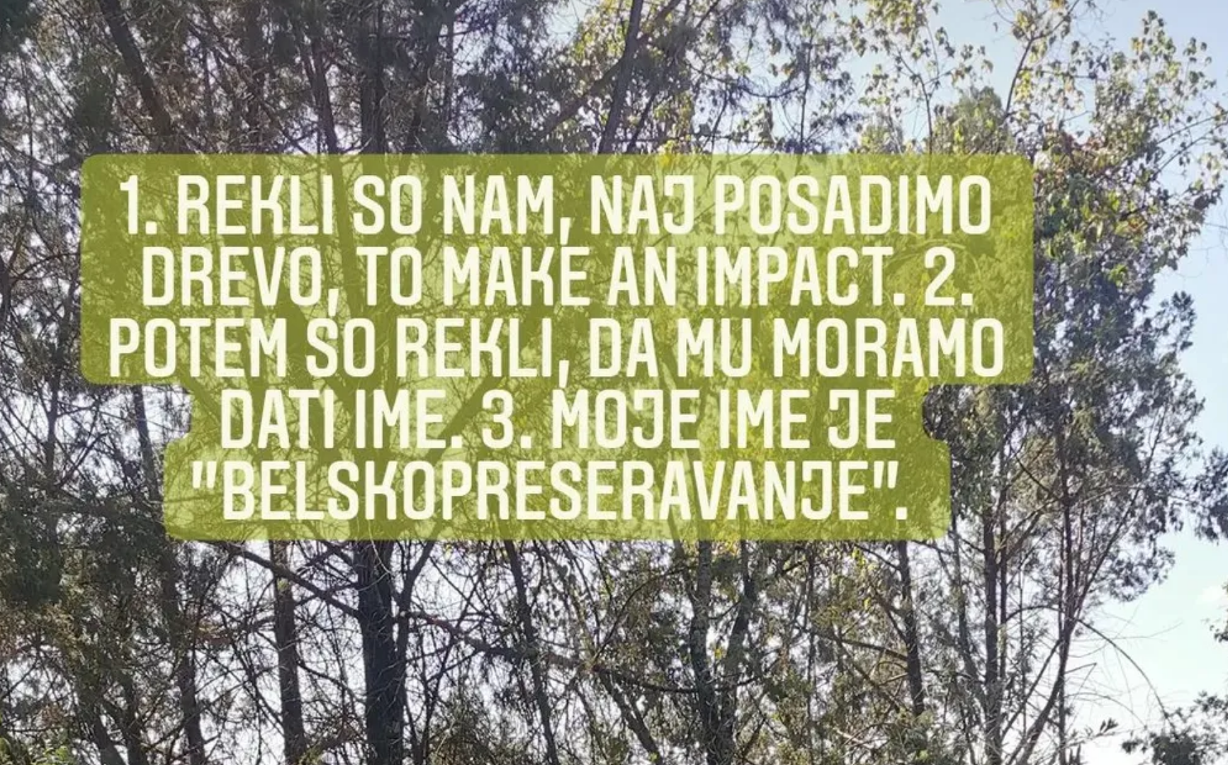 Vseeno pa niso samo zelo produktivno razpravljali o okoljski situaciji, temveč so jo tudi lastnoročno izboljševali. Sadili so drevesa! In jim celo nadeli imena!