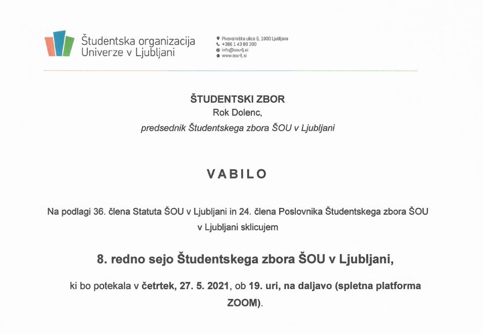 Spremljajte prenos tokratne seje študentskega zbora ŠOU v Ljubljani!