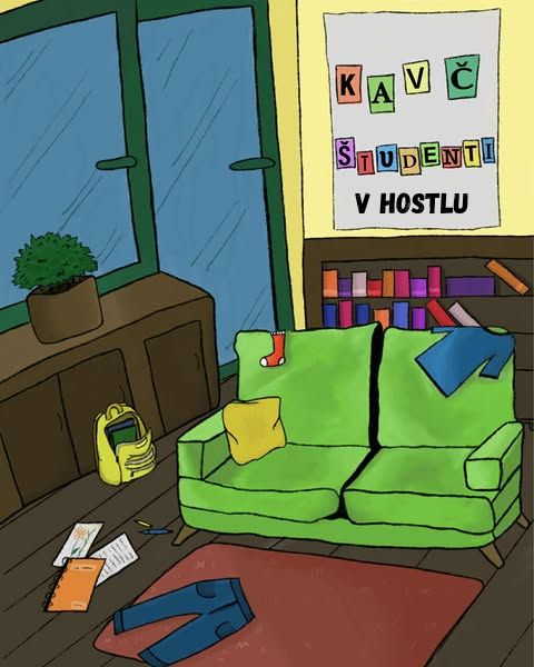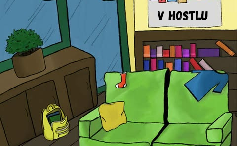 Kavč študenti v hostlu