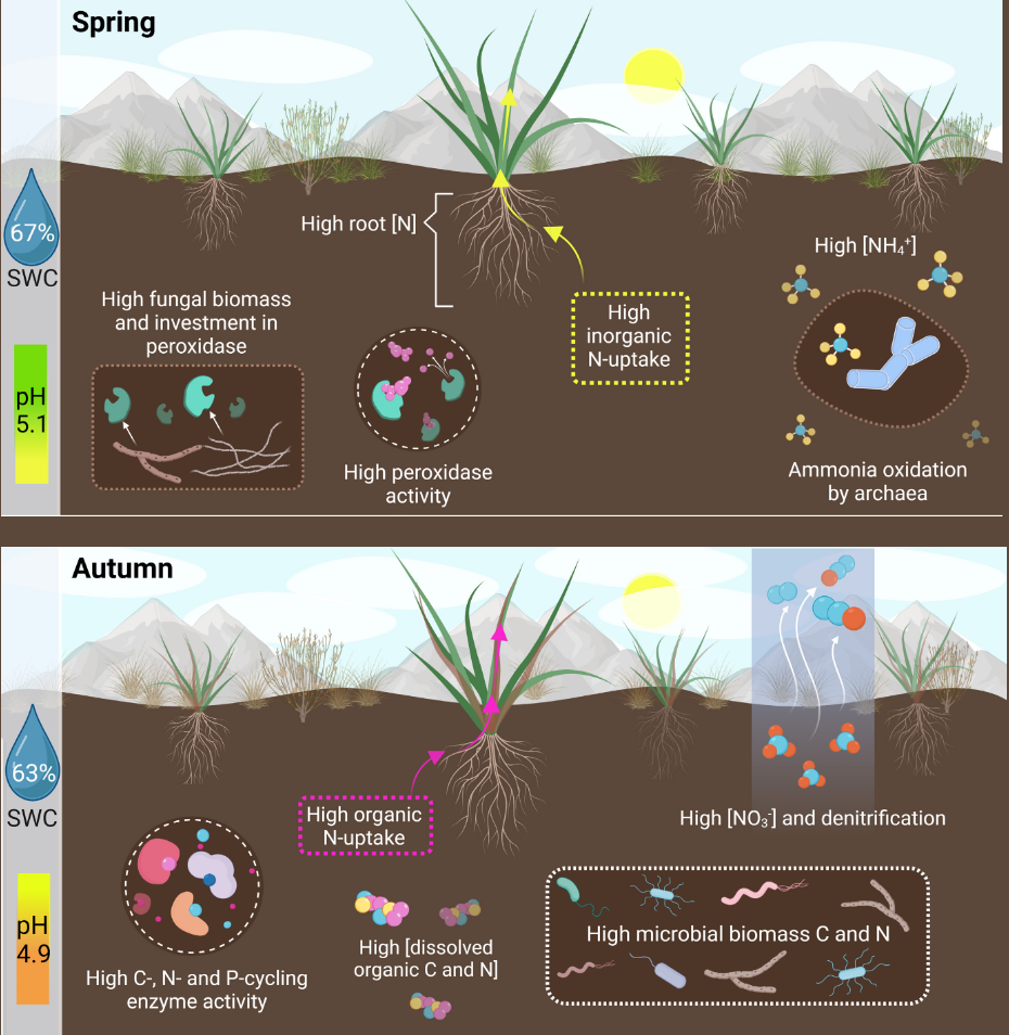Raziskovalno skupino je zanimalo, kako se v gorskih ekosistemih sezonska dinamika kroženja dušika spreminja, če upoštevamo medsebojni vpliv tanjšanja snežne odeje in spreminjanja tipa rastja. Tanjšanje snežne odeje in krajše obdobje pokritosti s snegom spreminjata tipična obdobja, ko rastline potrebujejo dušik, in koliko dušika je v tleh na voljo. Širjenje pritlikavega grmičevja v travišča pa spreminja potrebe rastja po dušiku. V prihodnje bosta ta dejavnika zaradi podnebnih sprememb še izrazitejša, saj se gorski ekosistemi segrevajo dvakrat hitreje od svetovnega povprečja.