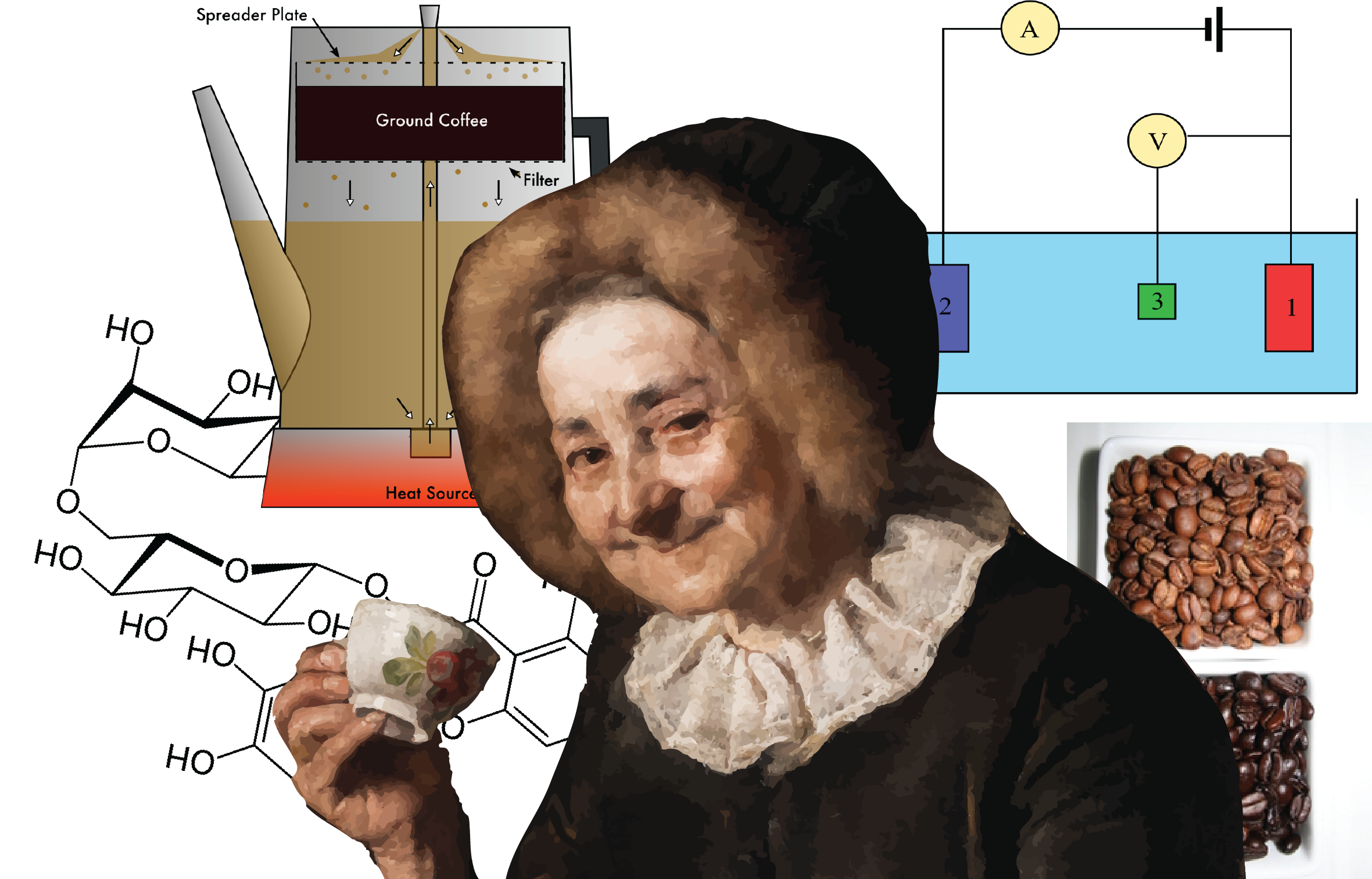 Raziskovalna skupina se je osredotočila na razliko v antioksidativnem potencialu med espressom, turško in filter kavo ter različnimi stopnjami praženja kave. Določili so ga elektrokemično s sistemom treh elektrod, pri čemer so spremljali odvisnost toka od spreminjajoče se napetosti. Kot referenco so uporabili raztopine znanih koncentracij kofeinske kisline, na podlagi katerih je izražen tudi ekvivalent antioksidativnega potenciala.