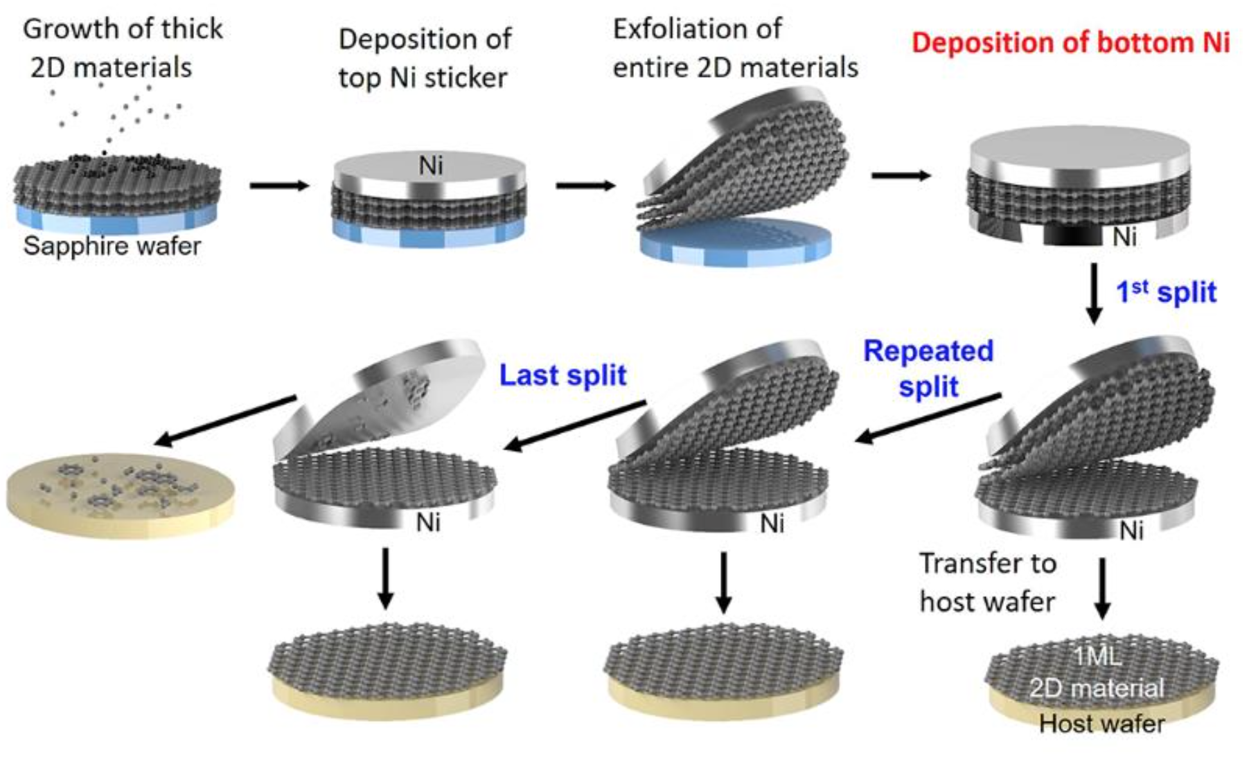 Mednarodna raziskovalna skupina inštituta v Massachusettu je v članku, ki je bil objavljen v reviji Science, predstavila, kako iz večjih kosov kristalov pridobiti 2D-enoslojne heterostrukture z do 5 centimetrov v premeru. Metodo so poimenovali Layer-resolved splitting in je lahko uporabljena za katerokoli proizvajanje 2D-materiala.