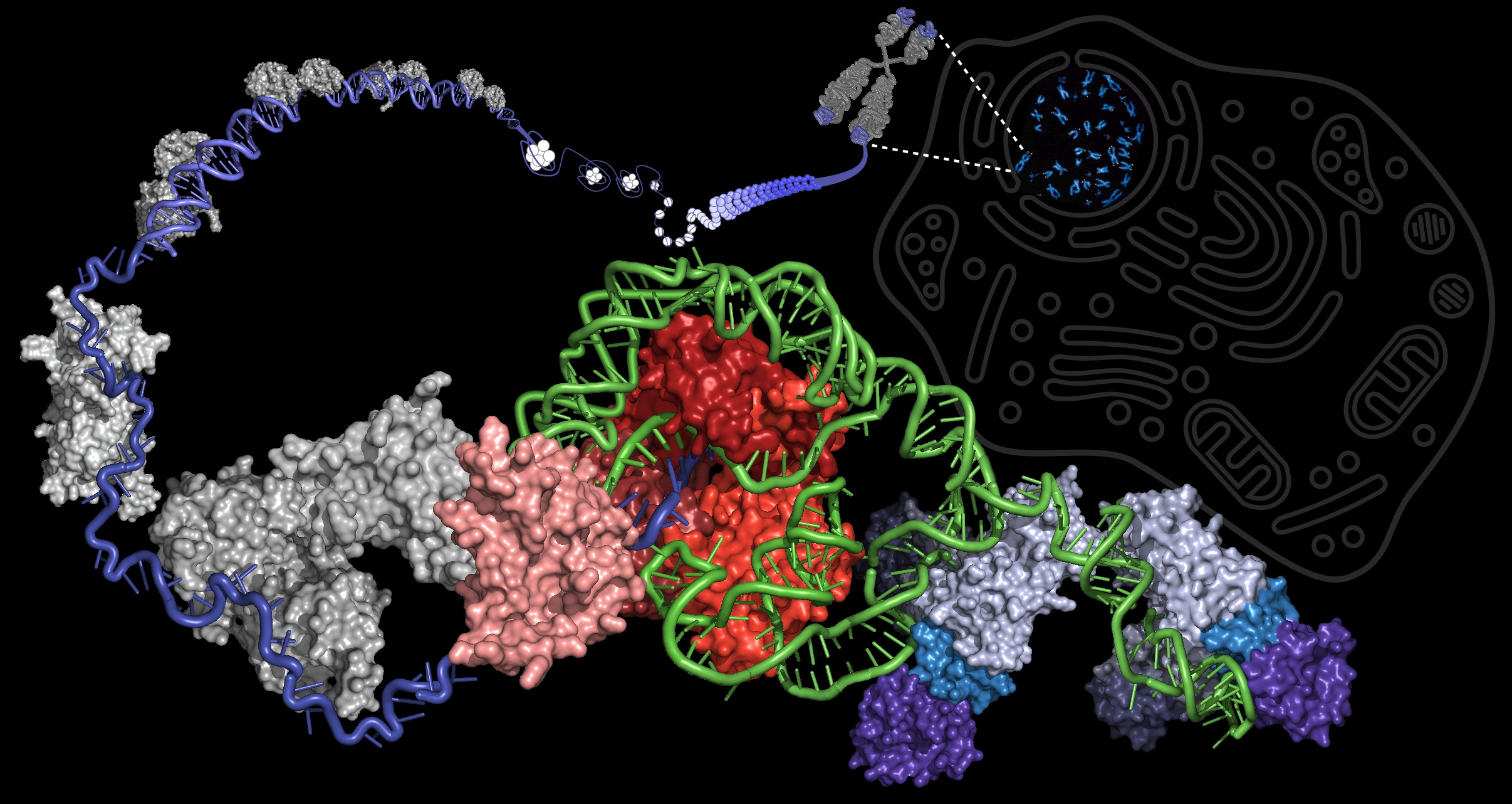 DNK se v celici nahaja v obliki kromosomov. Ti so sestavljeni iz genomske DNK in proteinov, ki omogočajo, da DNK zavzame čim manj prostora. Na koncih kromosomov se nahajajo specifične regije DNK, imenovane telomere. Telomere so sestavljene iz monotonih ponovitev šestih nukleotidov v točno določenem zaporedju – GGTTAG. Pri vsaki delitvi celice se dolžina telomer skrajša, kar nekoliko destabilizira kromosom. Ko postanejo telomere prekratke, celica izgubi sposobnost nadaljnjih delitev. Število delitev je določeno s Hayflickovo limito, ki je neposredno povezana z dolžino telomernih koncev na kromosomih. Dolžina telomer tako deluje kot nekakšna molekularna celična ura.