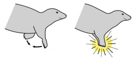 Tjulnjevi sprednji plavuti sta najprej v mirujočem položaju, ob boku. Nato tjulenj močno udari skupaj s svojima sprednjima okončinama pravokotno pod trebuhom. Tako ustvari glasen zvok, ki traja manj kot sekundo in doseže maksimalno frekvenco desetih kilohertzev. Sprednji okončini se nato ločita, zasukata navzven in na koncu vrneta v mirujoč položaj, ob boku.