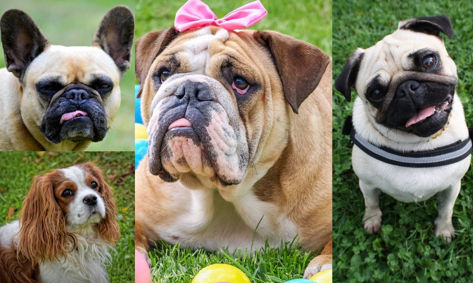 Med najbolj zdravstveno prizadete pasme sodijo brahicefalični psi. Med njimi so najbolj priljubljeni mopsi, bokserji, bostonski terierji, angleški ter francoski buldogi in kavalirji kralja Karla. Skupno jim je, da imajo izrazito kratko in široko glavo, izbočene oči in močno razvite čeljusti, pri katerih je spodnja navadno daljša od zgornje. V Sloveniji je bil leta 2022 izmed brahicefaličnih pasem najbolj priljubljen francoski buldog, sledil pa mu je kavalir kralja Karla.